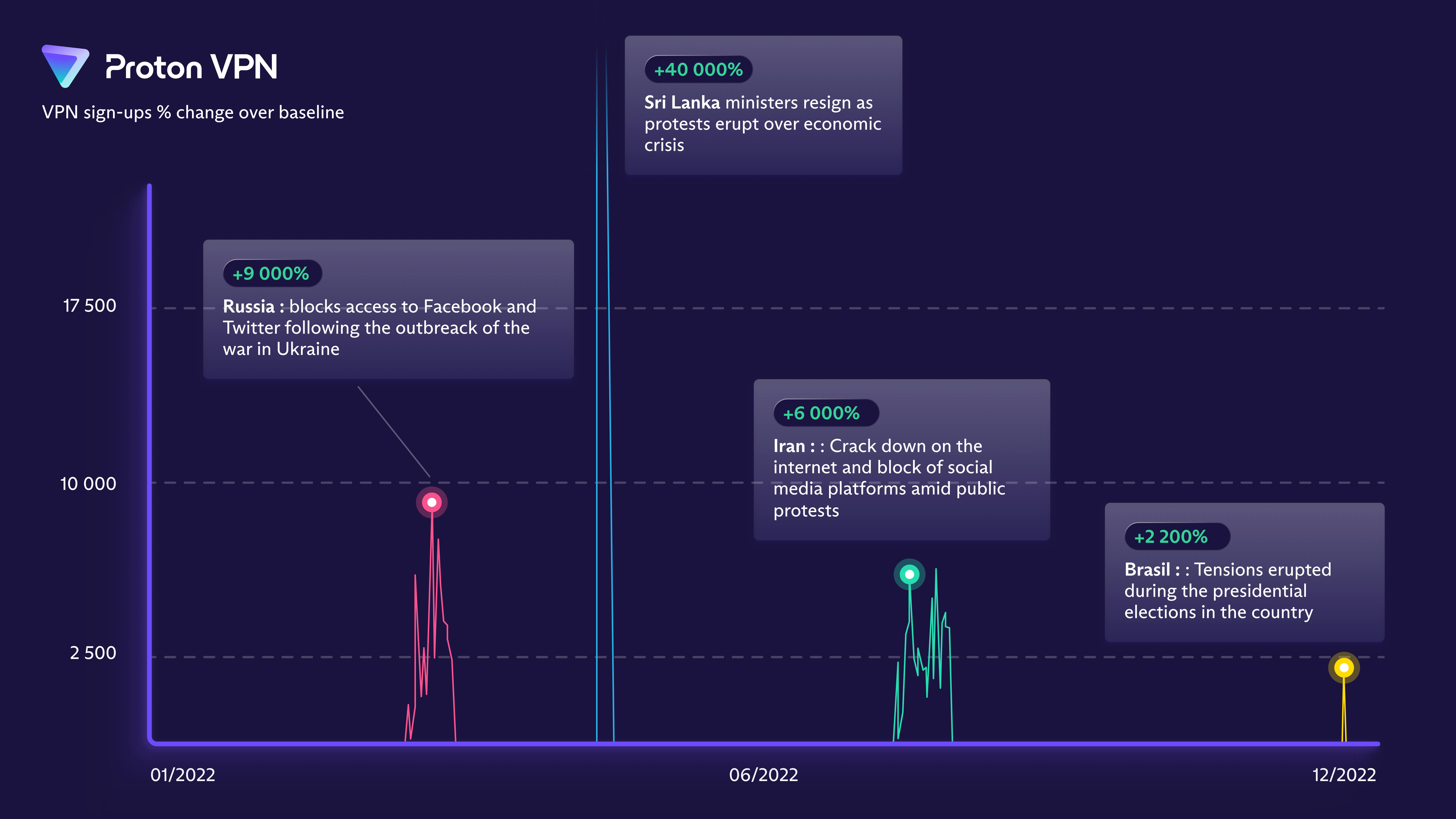 Documenting spikes in Proton VPN use as people fight for online freedom.