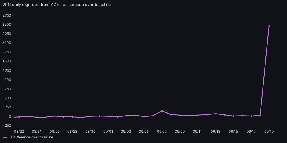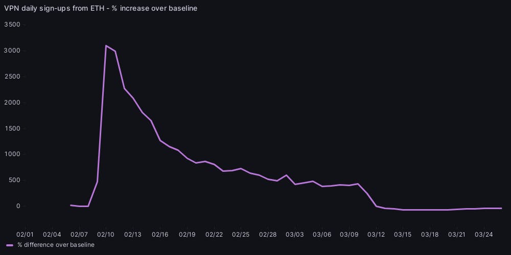 Sign-ups in Gabon continue to spike for a fourth day with daily sign-ups currently 25,000% above baseline. A clear cause has yet to be confirmed but it’s possible users are signing up ahead of the national elections on August 26, 2023.
