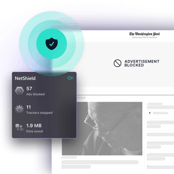 NetShield usa il filtraggio DNS per bloccare gli annunci nonché i tracciatori online che le agenzie pubblicitarie usano per seguirti in giro per Internet. Questo mantiene sicuro il tuo dispositivo e la tua navigazione privata.