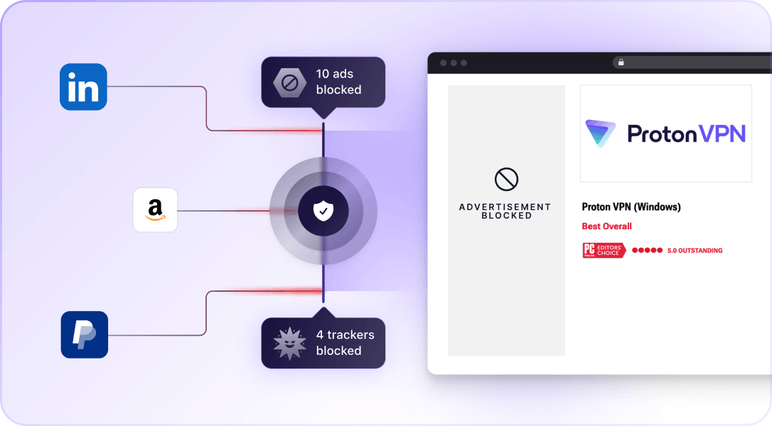 Proton VPN include NetShield, che usa il filtraggio DNS per velocizzare la tua navigazione proteggendo il tuo dispositivo.
