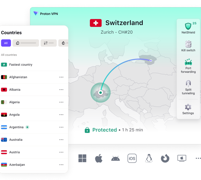 All Proton VPN apps are built to ensure your internet connection is secure and private.