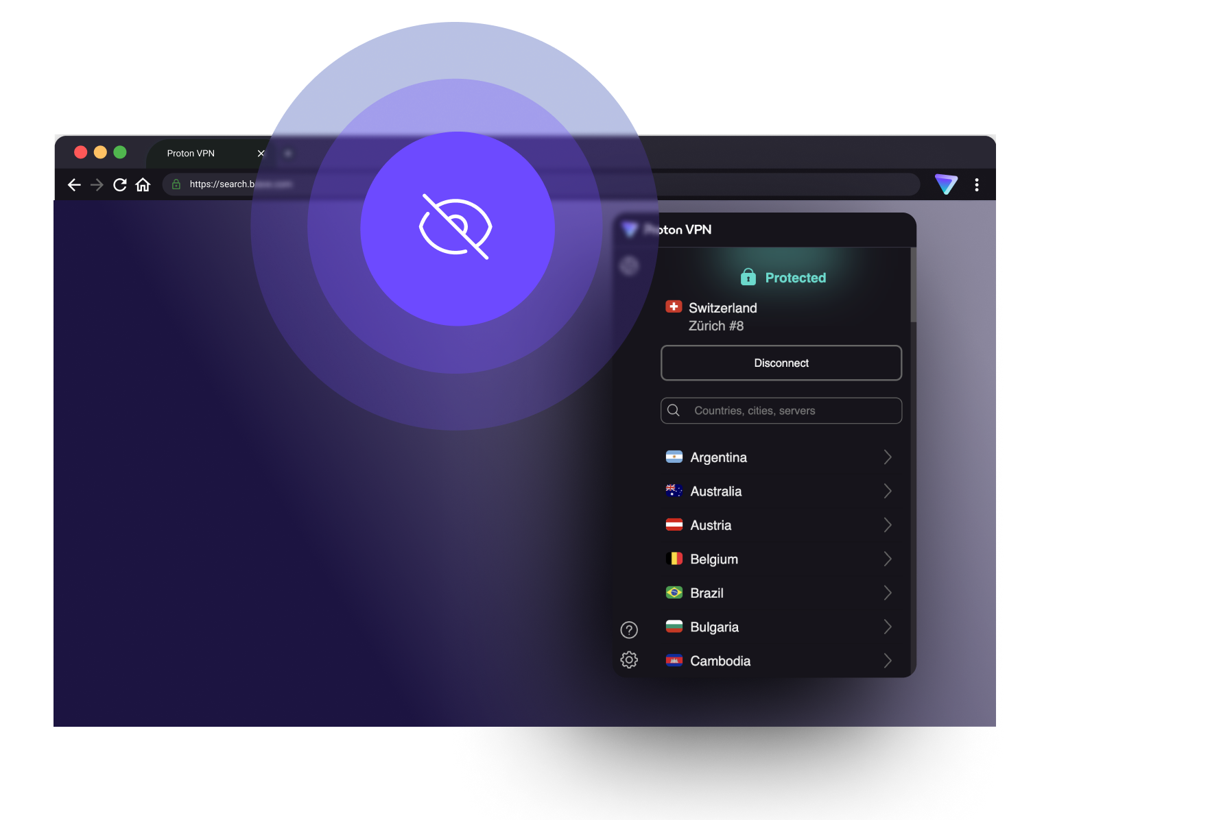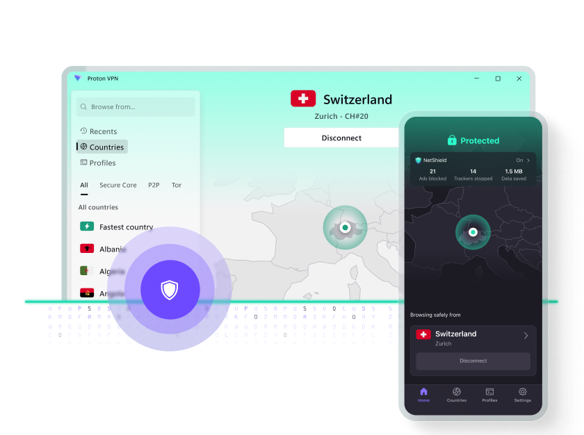 不安感を抱かずにウェブを閲覧しましょう。 Proton VPNは、実際のIPアドレスを隠してオンラインプライバシーを保護する、高速で信頼性の高いVPNサービスです。