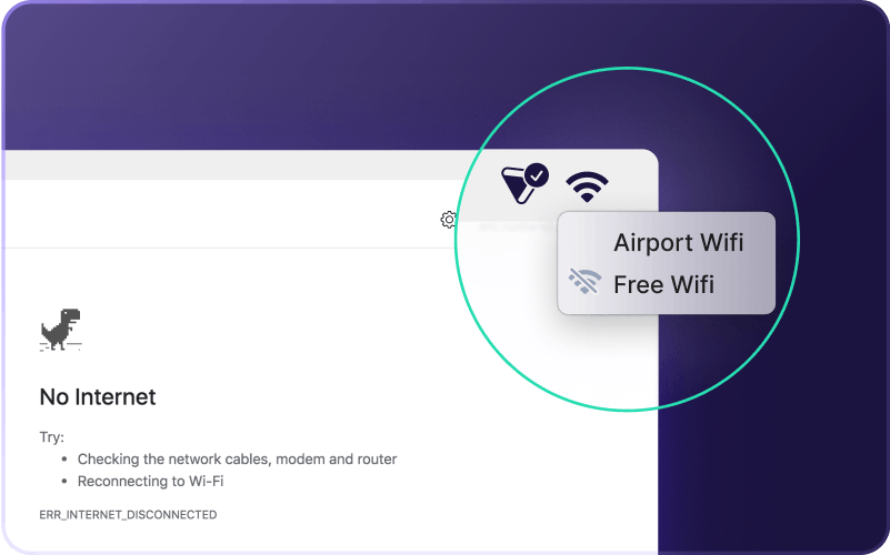 If your VPN connection is interrupted, our kill switch stops all network traffic to protect your IP address. Our always-on VPN reconnects automatically.