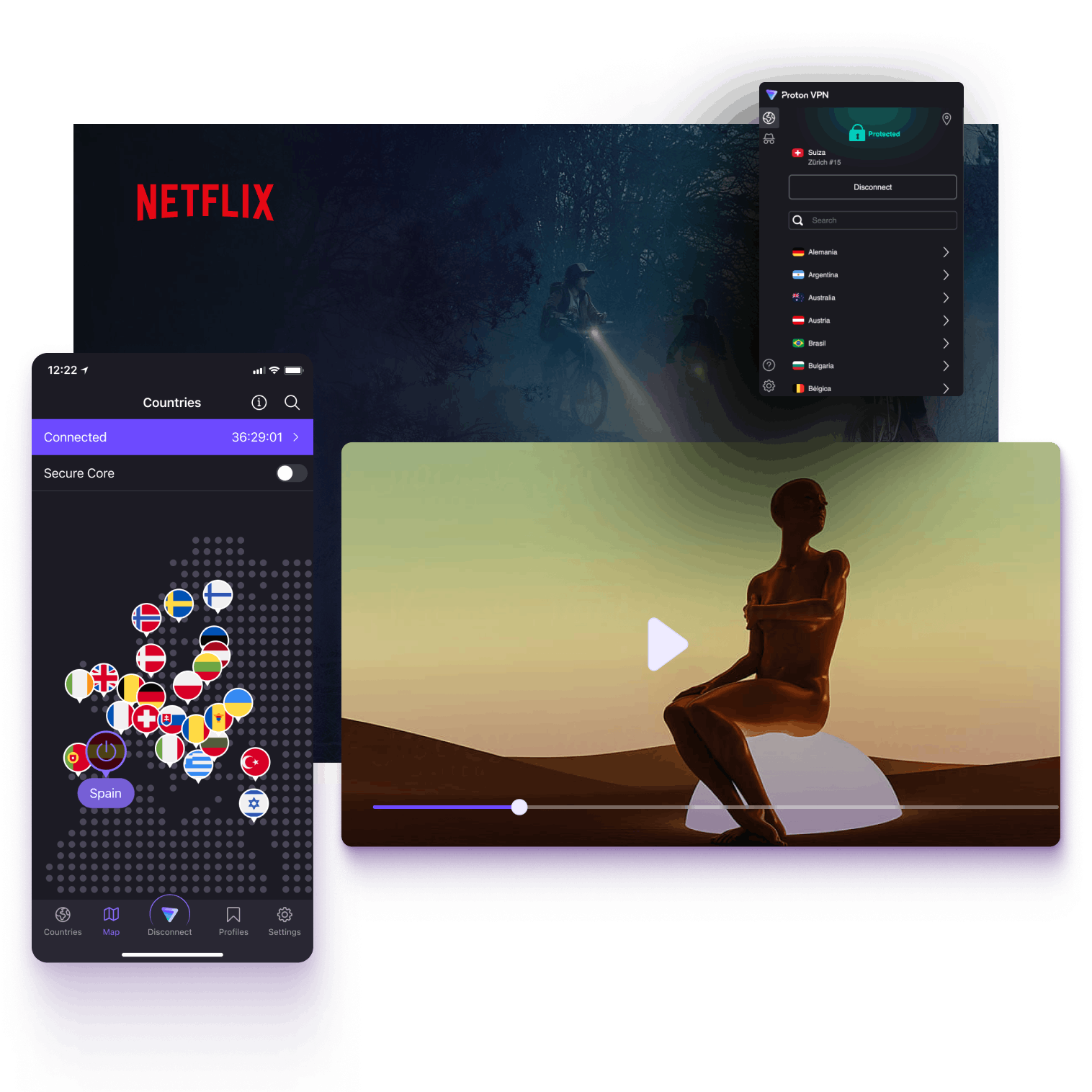 Inscreva-se no Proton VPN para transmitir a Netflix com segurança em todos os seus dispositivos, onde quer que você esteja.