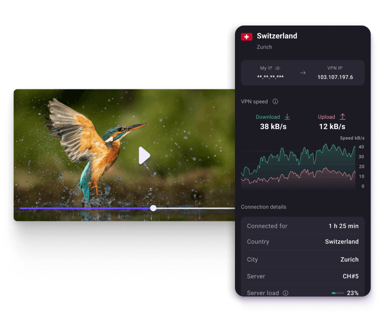 - 高速のWireGuard®プロトコルで接続を安定させ、最適なビデオ品質を提供します