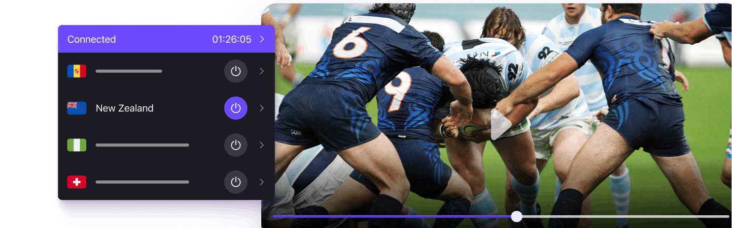 - ストリーミング中は、高度な暗号化で保護された安全なVPNプロトコルでスロットリングが防止され、保護されます