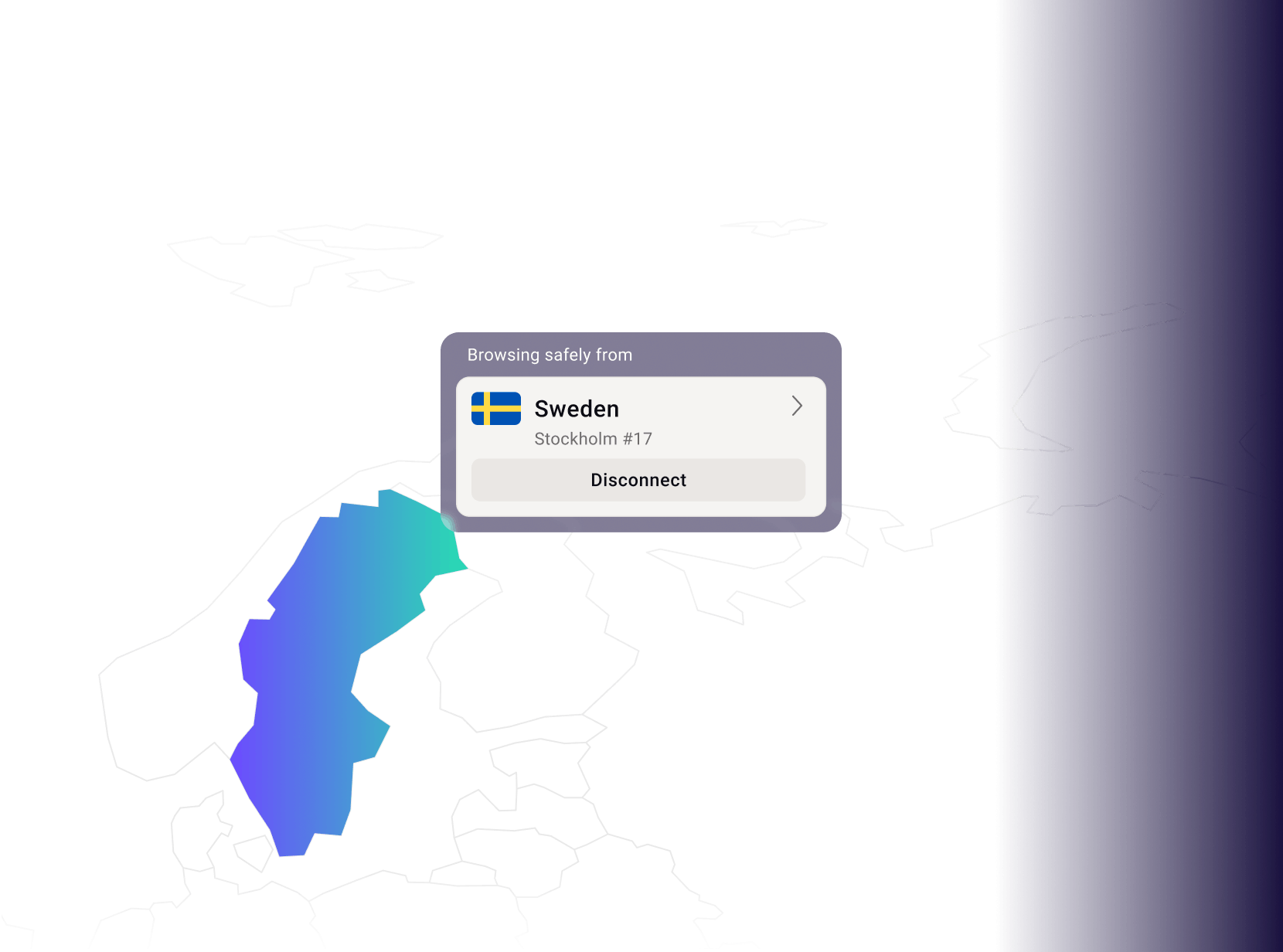 Connect to a Swedish server to surf the internet with ease, privacy, and security.
