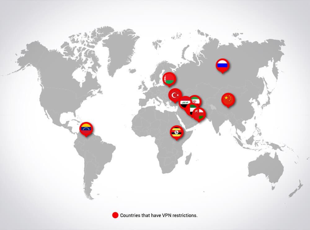 The countries below have passed laws directly or indirectly prohibiting the use of VPNs.
